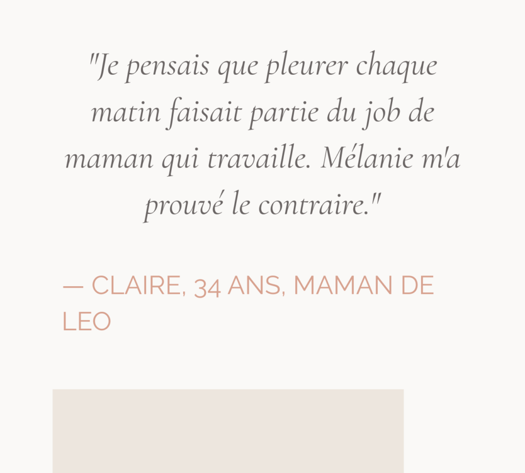 Tu aimes ton bébé à en mourir — et c’est précisément pour ça que partir chaque matin te brise un peu plus. Tu n’es pas faible. Tu n’es pas seule. La séparation quotidienne peut se vivre autrement. Sans survivre. Sans se couper en deux.